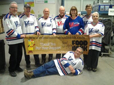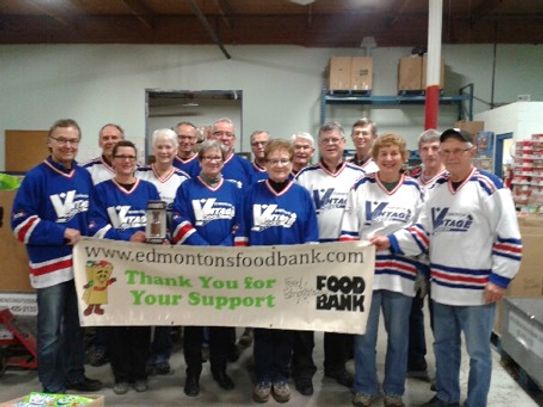 Vintage involvement in The Food Bank roots began in the fall of 2012 with Vintage offering a work group to volunteer at the Food Bank. The offer was to provide a group of ten to fifteen people to help six times per year on a one per month basis during the hockey season. The Vintage group goes to the Food Bank and spends two hours sorting food, preparing hampers, cleaning, and assorted other tasks. To date the relationship between Vintage and the Food Bank has been very agreeable to both sides.